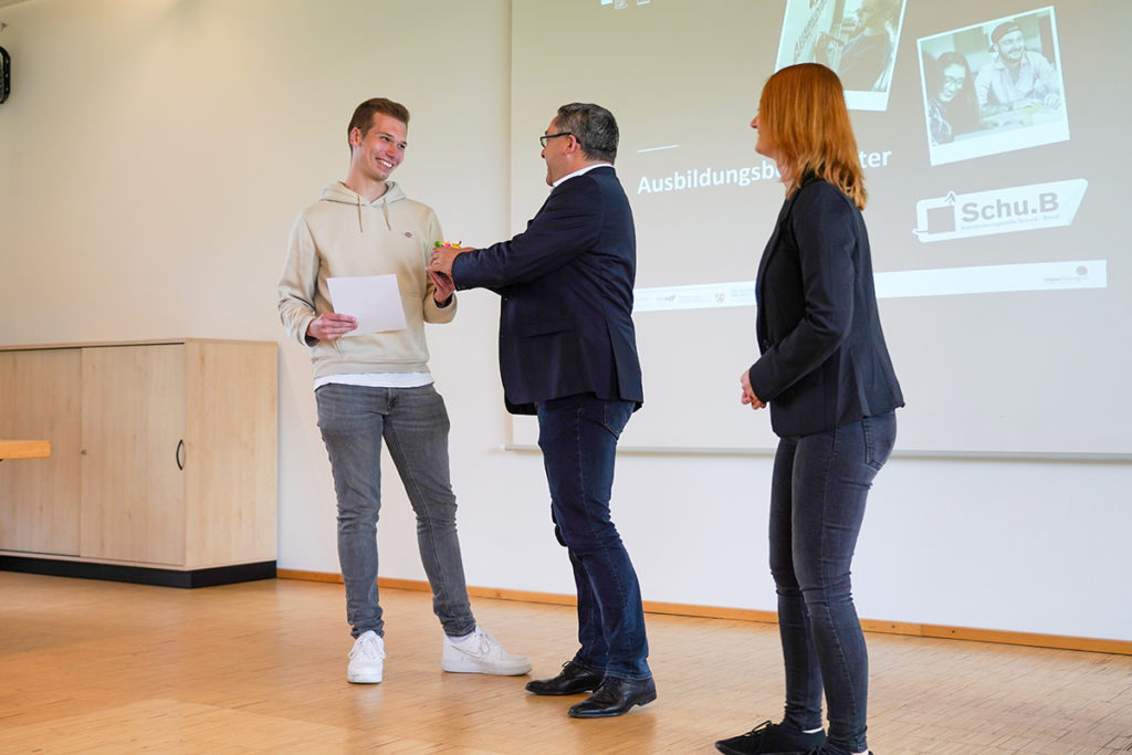 „Die Ausbildungsbotschafter geben jungen Menschen eine Orientierung bei der Qual der Berufswahl“, betont der Landrat. Er lobt die Bereitschaft zu diesen verantwortungsvollen und ertragreichen Einsätzen und Gesprächen mit Gleichaltrigen in den Schulen. Sein Dank richtet sich auch an die Kooperationspartner. Dirk Menzel, Leiter der Koordinierungsstelle Schule-Beruf, führt als Moderator durch die Veranstaltung und hebt das Engagement der Auszubildenden und Ausbildungsstätten hervor: „Sie alle bereichern den Bildungsstandort Lippe wesentlich und machen Lippe zu einem attraktiven Ort zum Arbeiten. Die Authentizität der Ausbildungsbotschafter ist dabei unbezahlbar.“